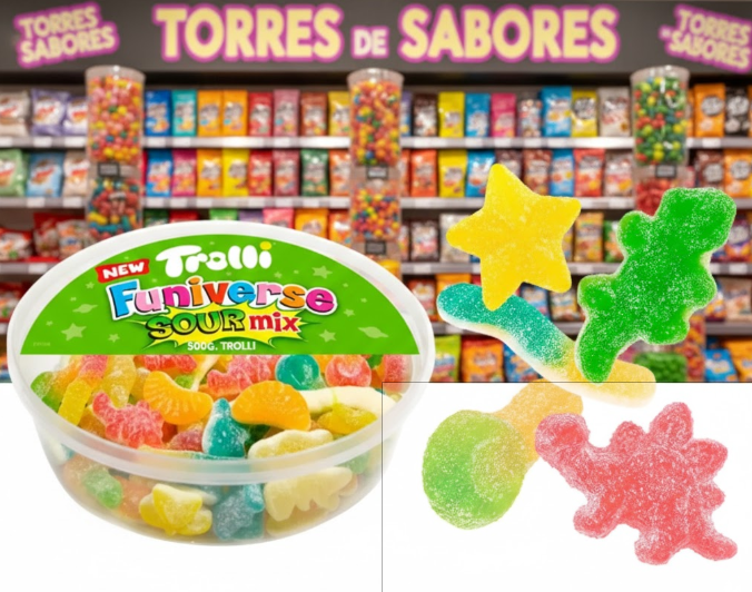 Si estás buscando el equilibrio perfecto entre el dulce idilio y un "punch" eléctrico, has llegado al lugar correcto. En nuestra tienda Torres de Sabores, ya puedes conseguir el Funiverse Sour Mix 500g de Trolli al mejor precio. Es, sin duda, la joya de la corona para quienes no se conforman con lo aburrido y buscan una experiencia galáctica en cada bocado.