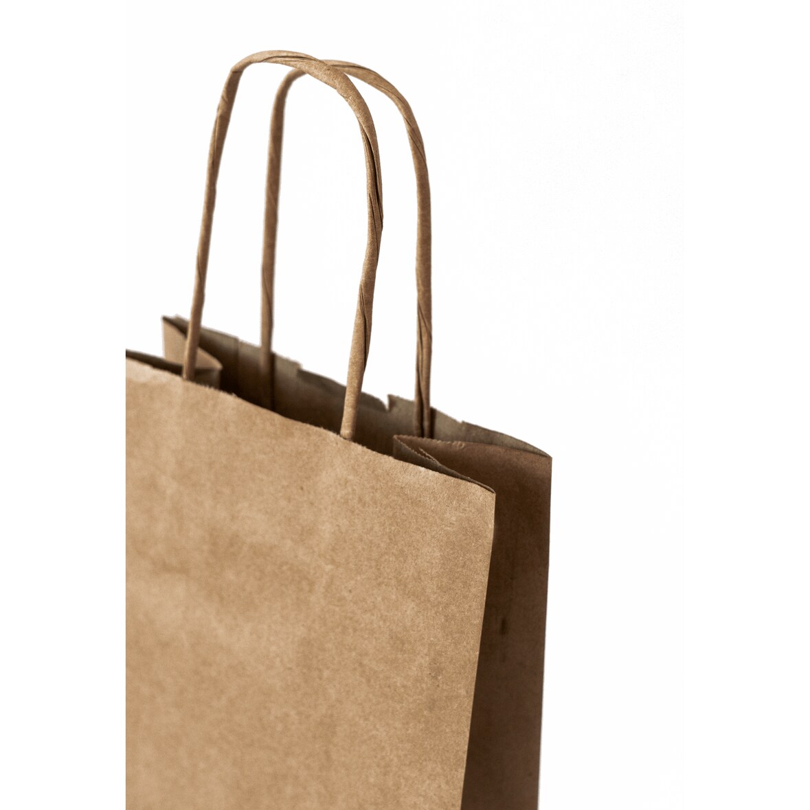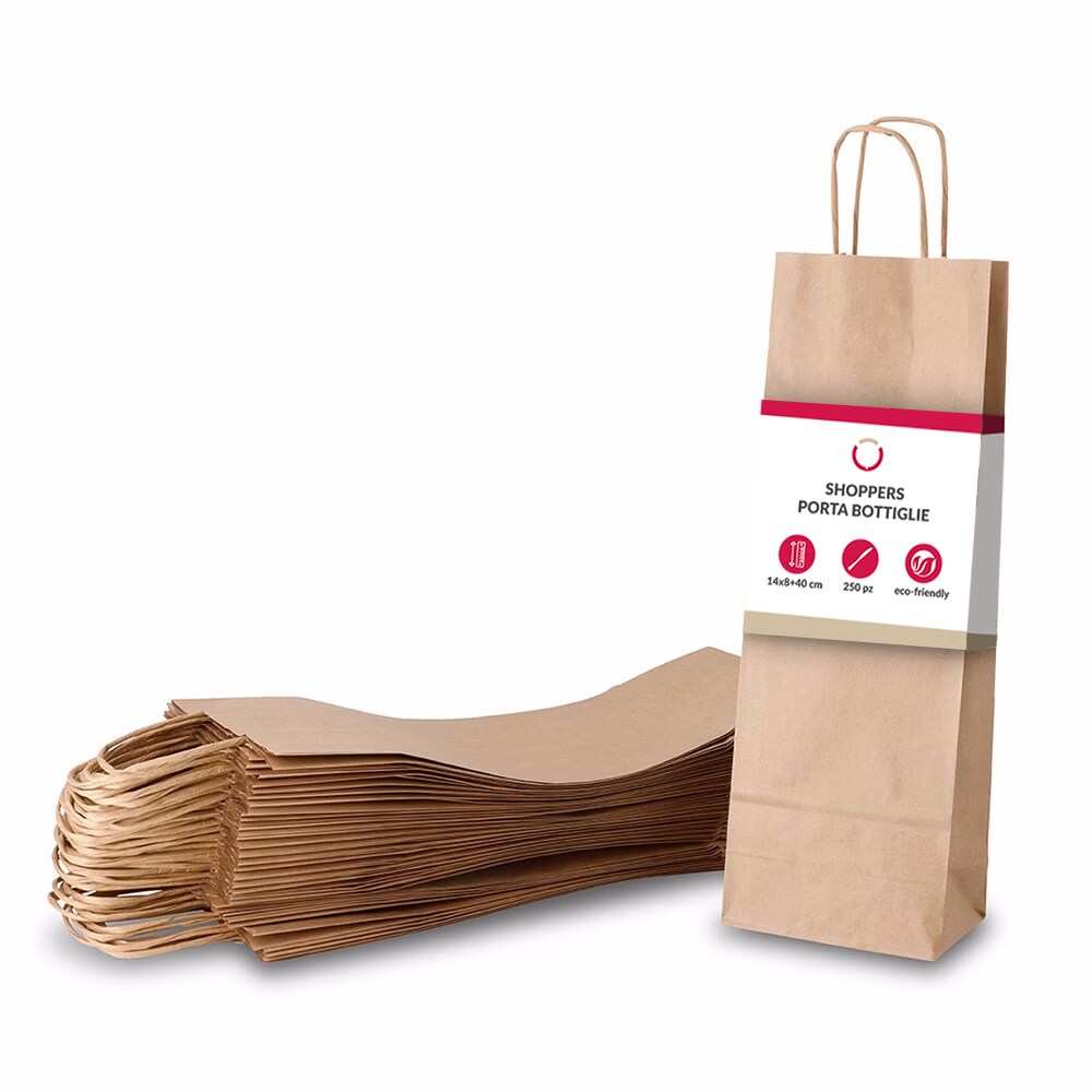 Bolsa con asas especialmente diseñada para transportar una botella de vino. Hecha en papel kraft de 100g/m2.