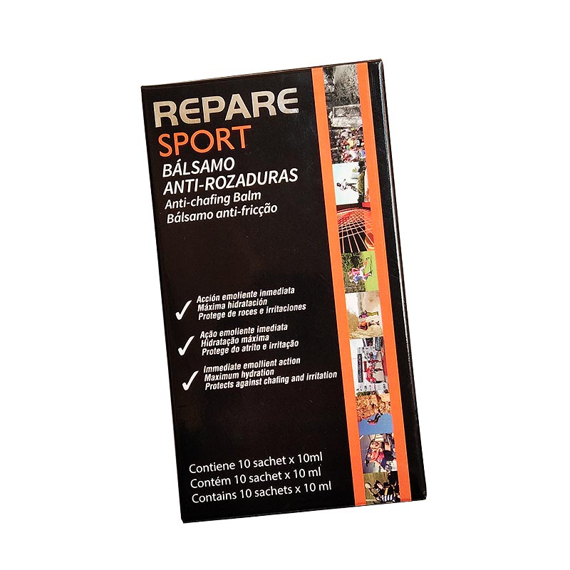 El bálsamo anti rozaduras Repare Sport con acción emoliente inmediata, hidrata y suaviza, formando una película protectora sobre la piel protegiéndola de los roces e irritaciones producidos por la fricción de la piel con la ropa o con la propia piel. La piel bien hidratada aumenta el deslizamiento minimizando las rozaduras, irritaciones y enrojecimiento.