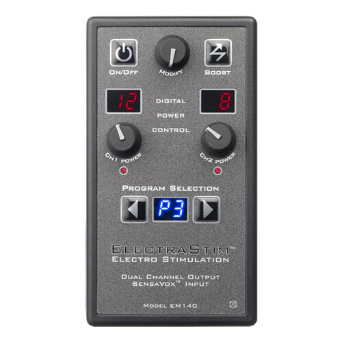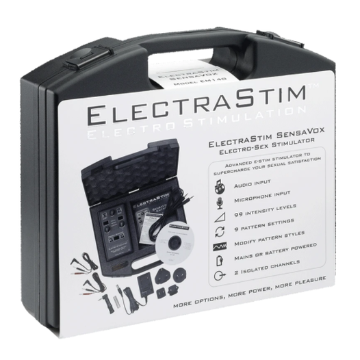 ElectraStim SensaVox es uno de nuestros estimuladores más avanzados y potentes, repleto de características tentadoras y en un diseño elegante y de alta gama. Si quieres una caja de potencia de estimulación electrónica de alto rendimiento que ofrezca más formas de jugar, te encantará esta máquina sexual eléctrica de dos canales.