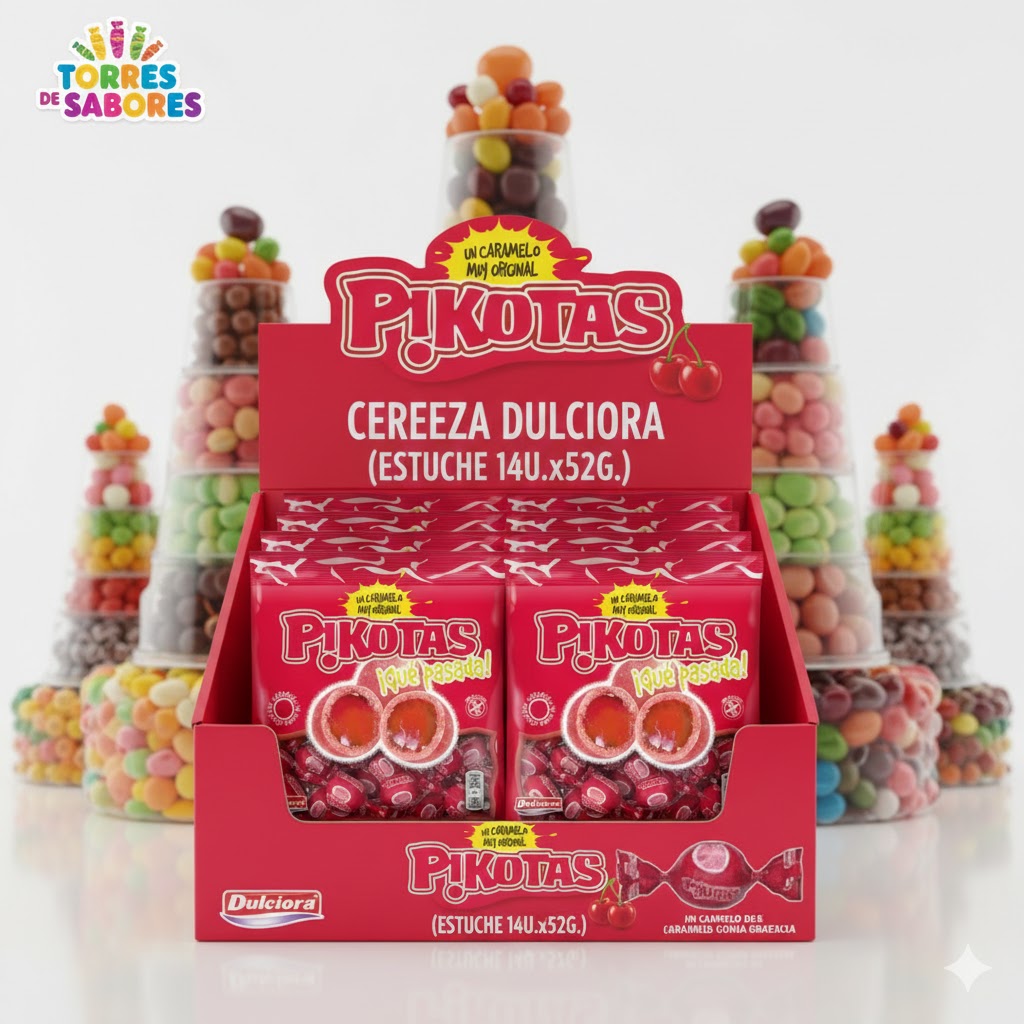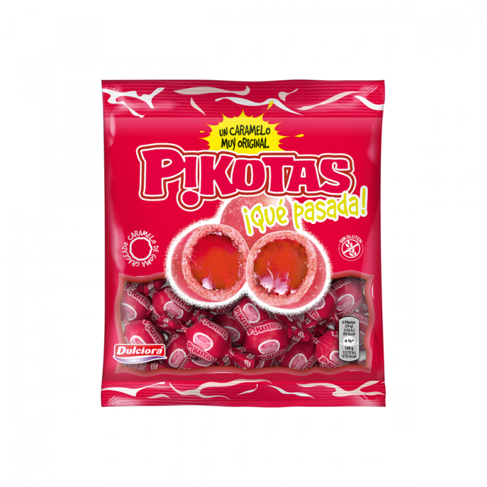 Delicioso caramelo de goma grajeado sabor cereza. Sin gluten. Se presenta en estuche de 14 bolsas de 52g.
