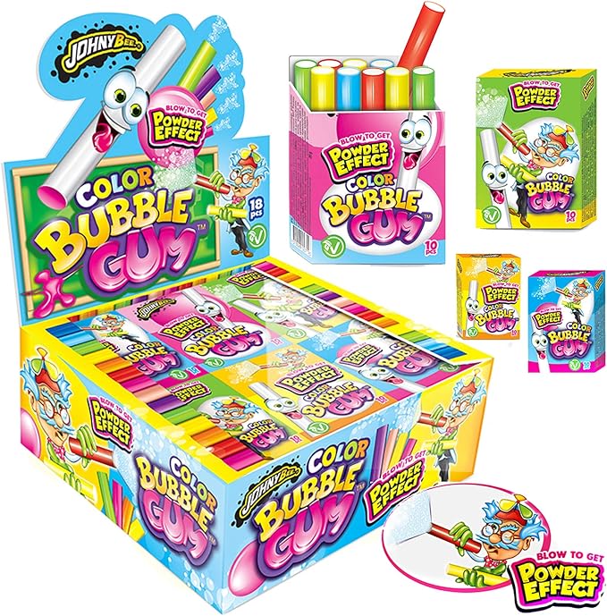 Cajita con 10 lápices o barritas de chicle. Sabor tutti-frutti. Caja 18uds.