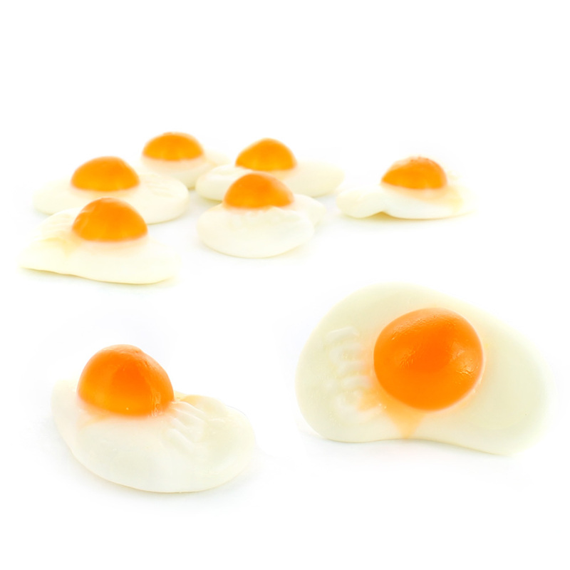 Huevos fritos brillo Fini son unas divertidas chuches en forma de huevo frito, con una textura suave y un delicioso sabor dulce. Ideales para compartir en fiestas, celebraciones o como un capricho único. Perfectos para los amantes de los dulces originales y llenos de color.