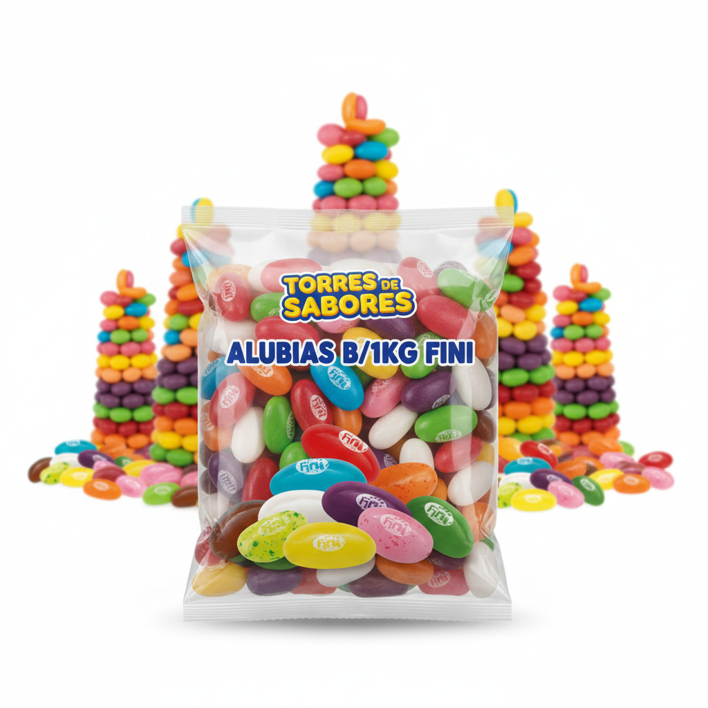 Deliciosas gominolas con forma de alubias y sabores a fruta. Conocidas como Jelly Beans. Con textura de gragea. Bolsa de 1kg. Contiene unas 500 golosinas aproximadamente. Cada chuche tiene 2g. Producto sin gluten.