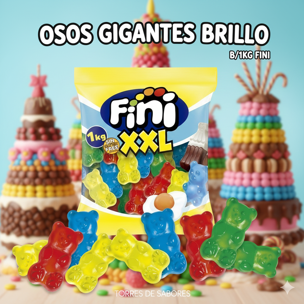 OSOS XXL GIGANTES son los clásicos osos de gominola de tamaño gigante, miden unos 8 cm de largo aproximadamente. Se venden en bolsas de 1Kg. Sin Gluten. Sabores a frutas. Estas chucherias son ideales para endulzar tus fiestas de cumpleaños, crear tus pasteles más divertidos o para realizar los conocidos Candy Bar, actualmente muy de moda entre las celebrities.