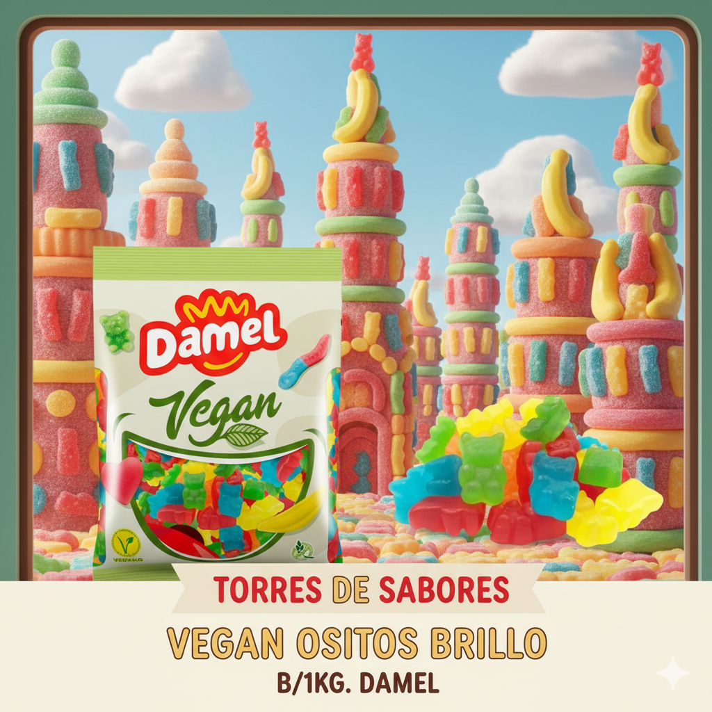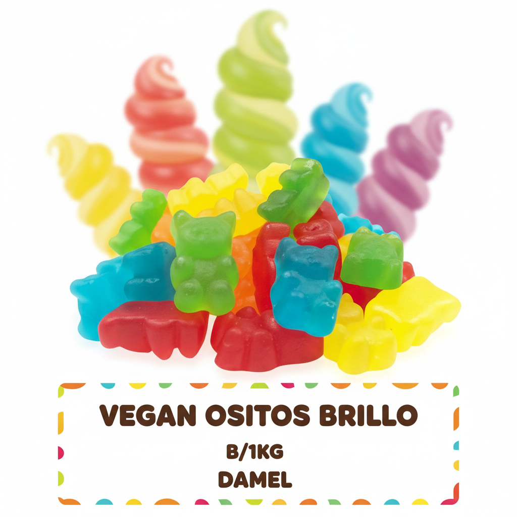 nos presenta su linea de golosinas veganas. Podrás disfrutar de tus golosinas preferidas sin preocuparte por los aceites, gelatinas o leches de origen animal. Están presentadas a granel, en una bolsa con 1kg.