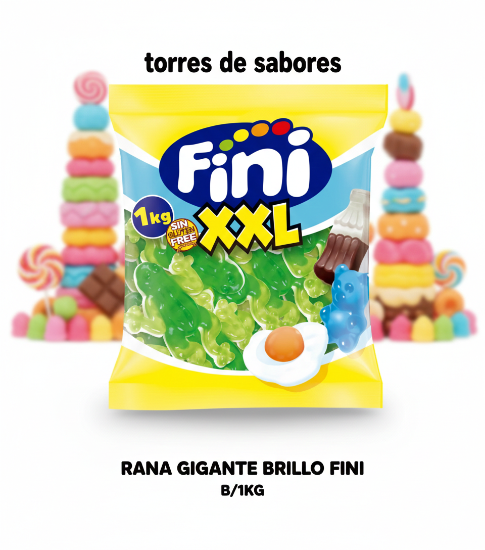 Las Ranas Gigantes Brillo Fini son coloridas y deliciosas gomitas con forma de rana y un atractivo acabado brillante. Su textura suave y sabor afrutado las hacen irresistibles para grandes y pequeños. Un clásico de Fini perfecto para disfrutar en cualquier ocasión o incluir en mesas dulces y tartas de chuches.