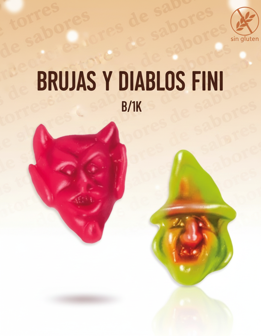 Bolsa de 1 kilo de brujas y diablos, totalmente comestibles, ideales para la elaboración y decoración de las tartas de chuches.
