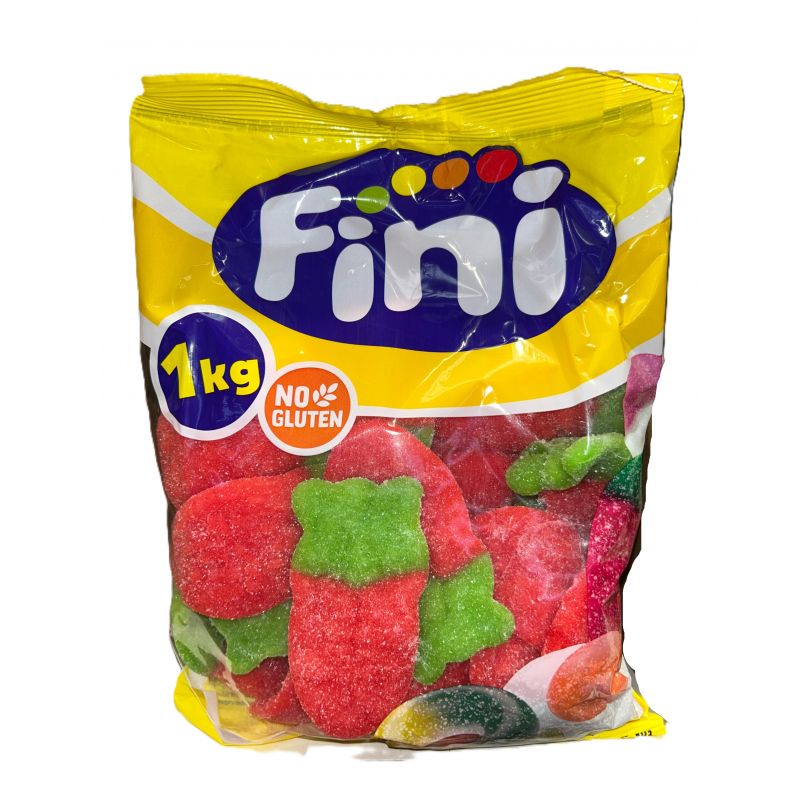 Golosinas grandes en forma de fresas, en su formato pica. Presentados en una bolsa con 1kg. Se trata de un producto SIN GLUTEN.