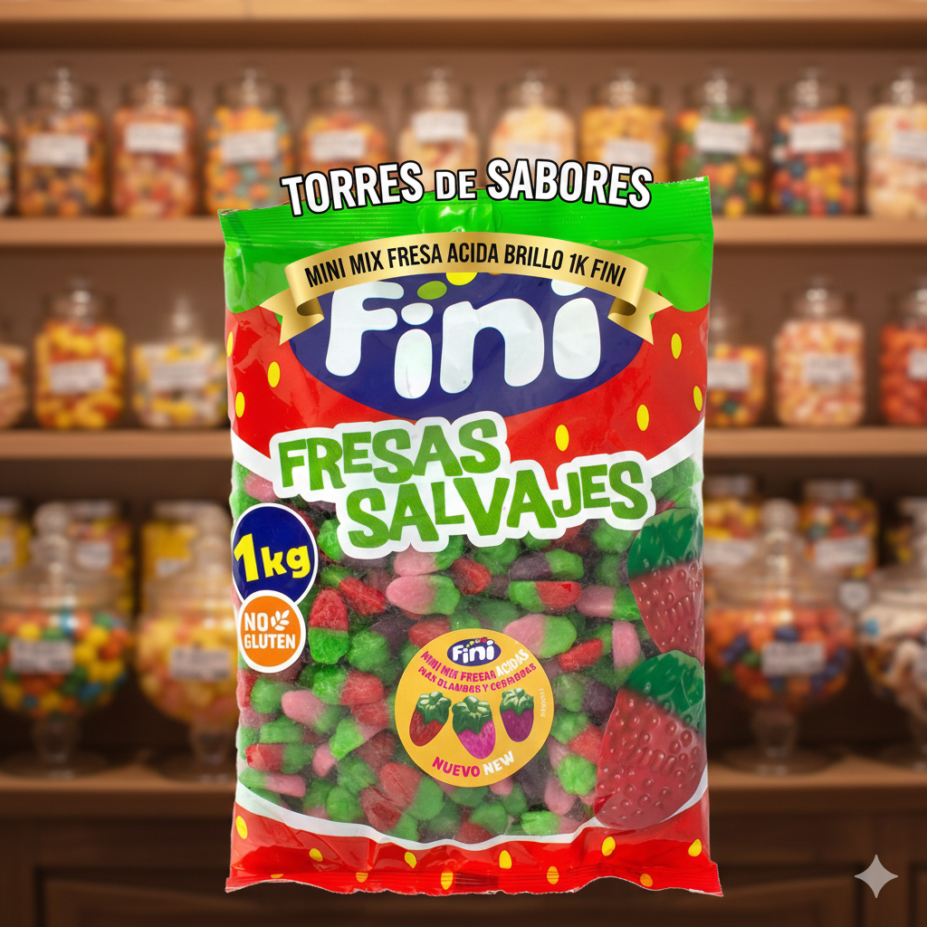 Sumérgete en el delicioso sabor ácido de las fresas salvajes de Fini. Estas gominolas tienen un sabor intenso a fresa con un toque ácido que hará explotar tus sentidos. Su textura brillante y su color rojo vibrante las hace irresistibles.