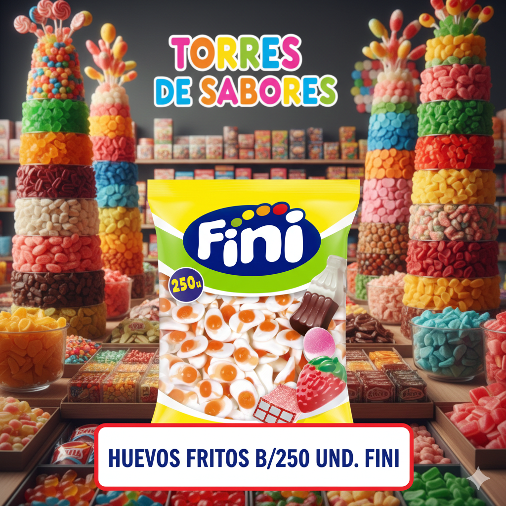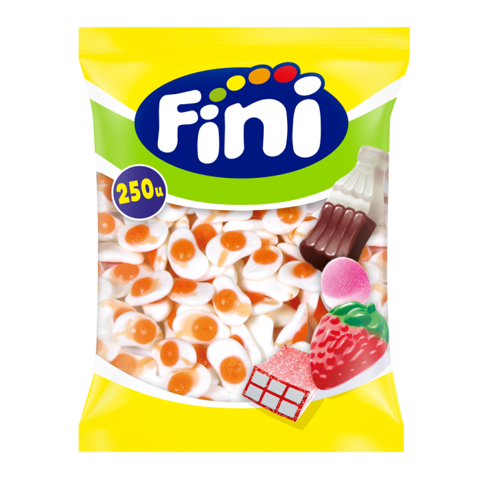 Golosinas con forma de huevos fritos. Un clásico para el que no pasa el tiempo. En tonos característicos blancos y naranjas. Disfrútalos ahora en su formato a granel en bolsa de 250 unidades. Es un producto sin gluten.