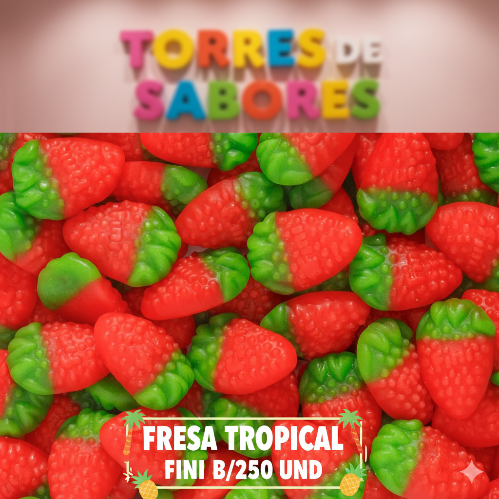 Gominolas con sabor y forma de fresa. El formato en el que se presentan estas fresas de Fini es en formato de 250 unidades. Sin gluten.