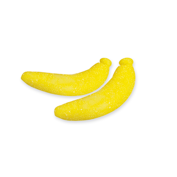 Clásicas chuches en forma de plátano y sabor intenso recubiertos de una fina capa de azúcar. Perfecta para dar un toque de color en mesas dulces o en cumpleaños y fiestas temáticas. La bolsa contiene 250 unidades. Sin gluten.
