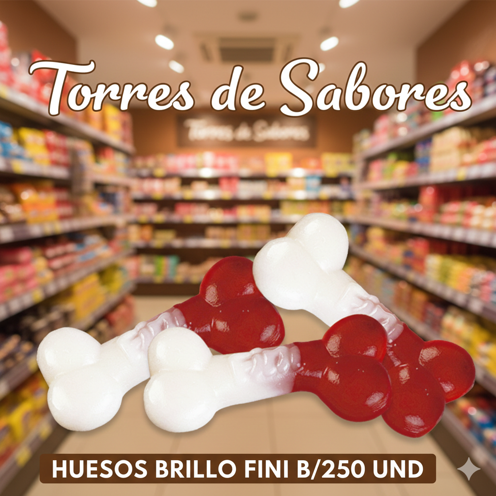 Los Huesos Brillo de Fini son deliciosas gominolas con forma de hueso, cubiertas con un brillante glaseado. Con 250 unidades por paquete, estas gominolas tienen un delicioso sabor afrutado y una textura suave, ideales para disfrutar en cualquier ocasión. Sin gluten.