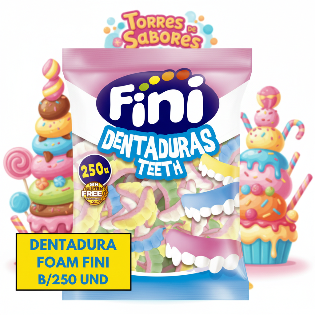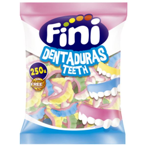 Las Dentaduras Foam de Fini son un producto SIN GLUTEN. Con un formato de bolsa con 250 unidades.