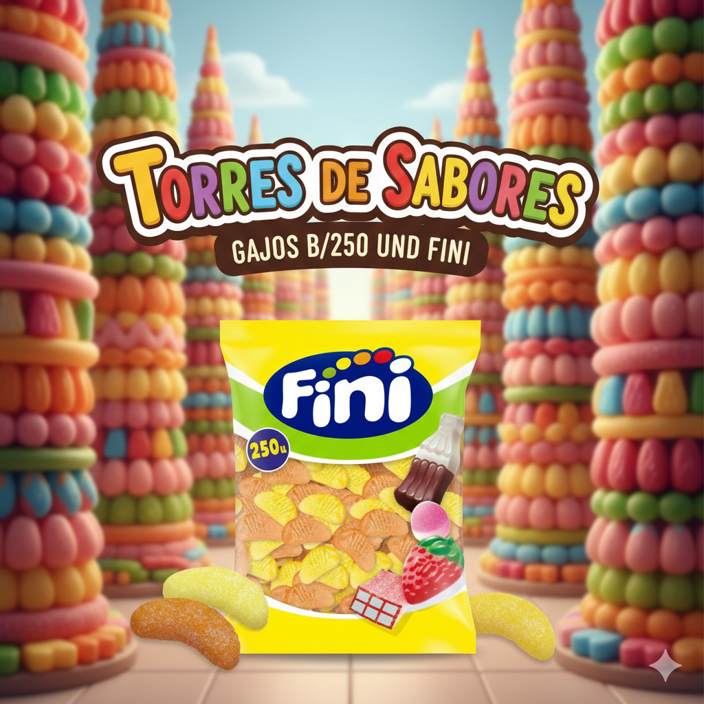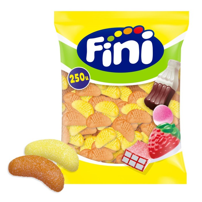 Caramelos de goma Fini con forma de gajos. Son surtidos de naranja y limón. Presentado en una bolsa con 250 unidades. Un clásico entre las golosinas que nunca pasa de moda. Es un producto sin gluten.