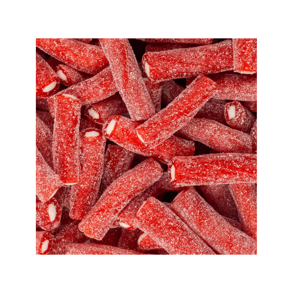 Deliciosa torcida de regaliz rojo rellena de nata, cobertura pica. Sabor fresa y nata. Bolsas de 1600 gramos (250 unidades aproximadamente).