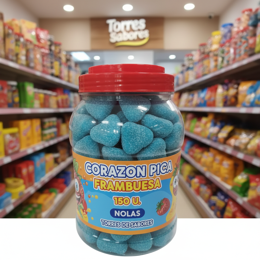 Golosina rellena con forma de corazones. Pertenecen a la línea de "Rellenolas". Con dos texturas: interior relleno y exterior con un toque de pica pica. Con intenso sabor a frambuesa. Están presentados en un tarro con 150 unidades. Es un producto SIN GLUTEN.