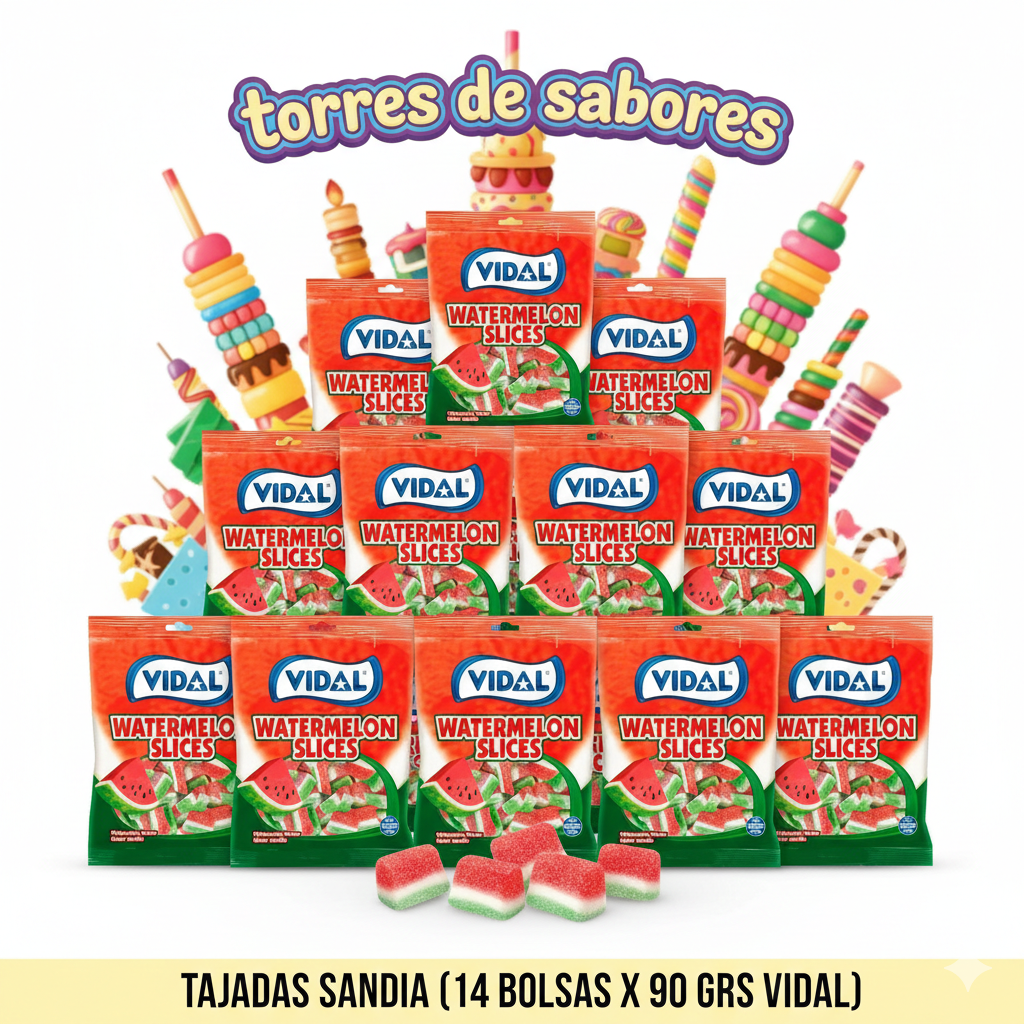 Golosina en forma de tajada de sandía con un refrescante sabor a sandía y una cobertura pica que conquistará tu paladar. Con este clásico nunca fallarás en tus mesas dulces. Pieza original de Vidal Golosinas.