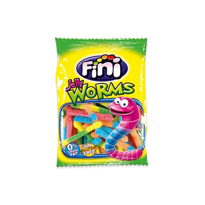 Bolsita Fini 90gr Gusanos azúcar. Va presentado en una caja con 12 bolsitas.