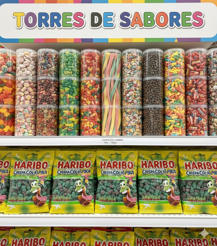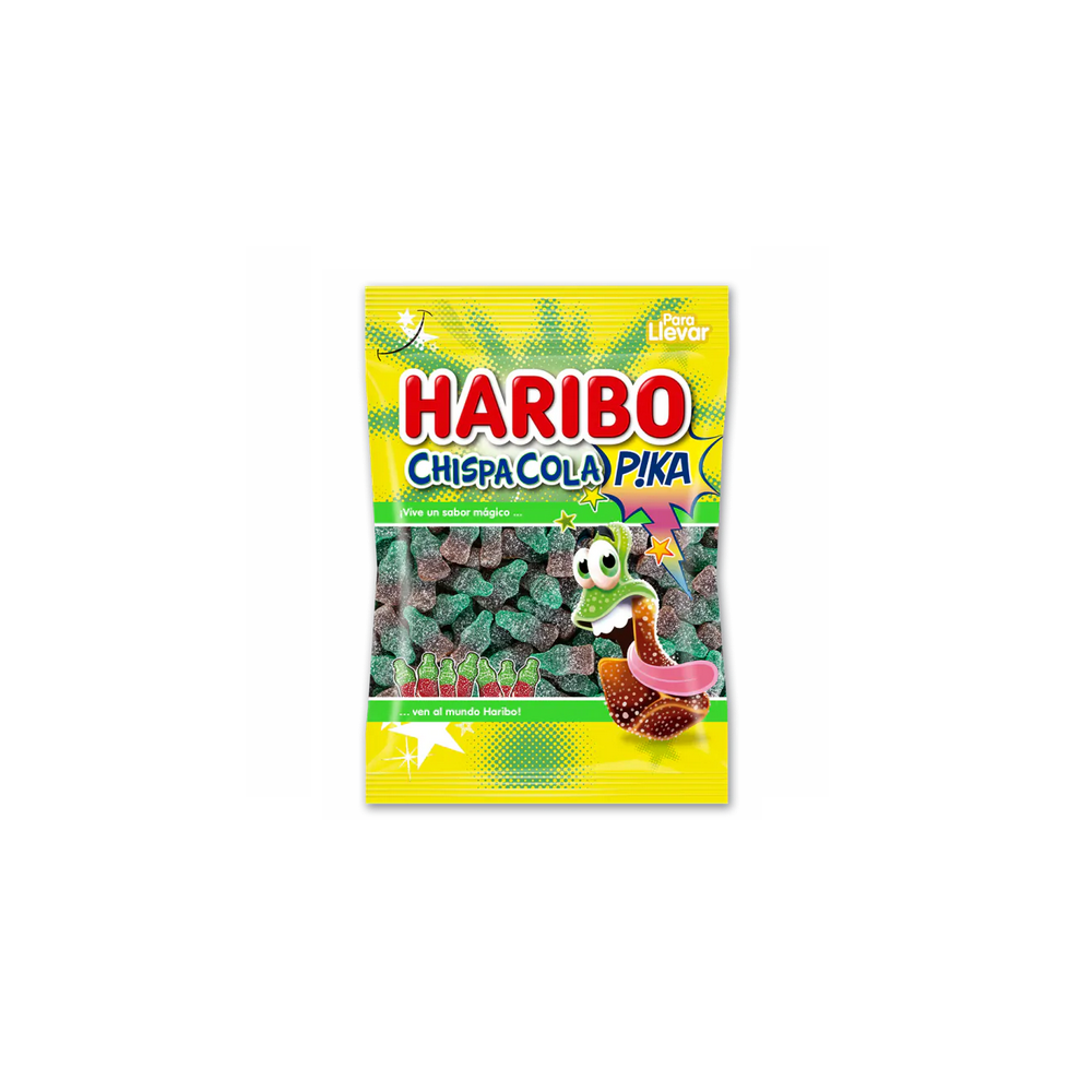 Caramelos de goma con forma de colas, son de color verde y con un irresistible sabor a cola, recubiertas de pica.