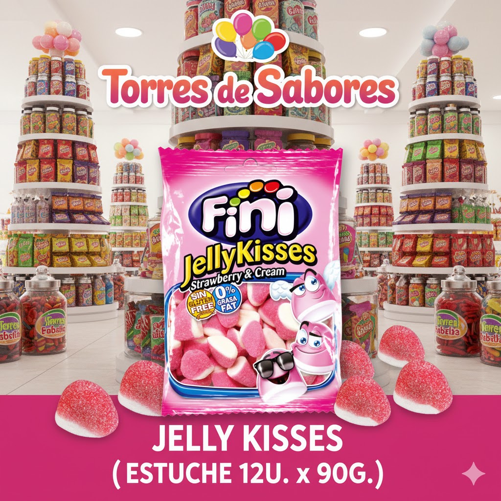 Deliciosas chuches con sabor a fresa. Vienen 12 bolsas de 90g cada una. Ideal para llevártelas al cine, al trabajo o a cualquier sitio. Sin gluten.