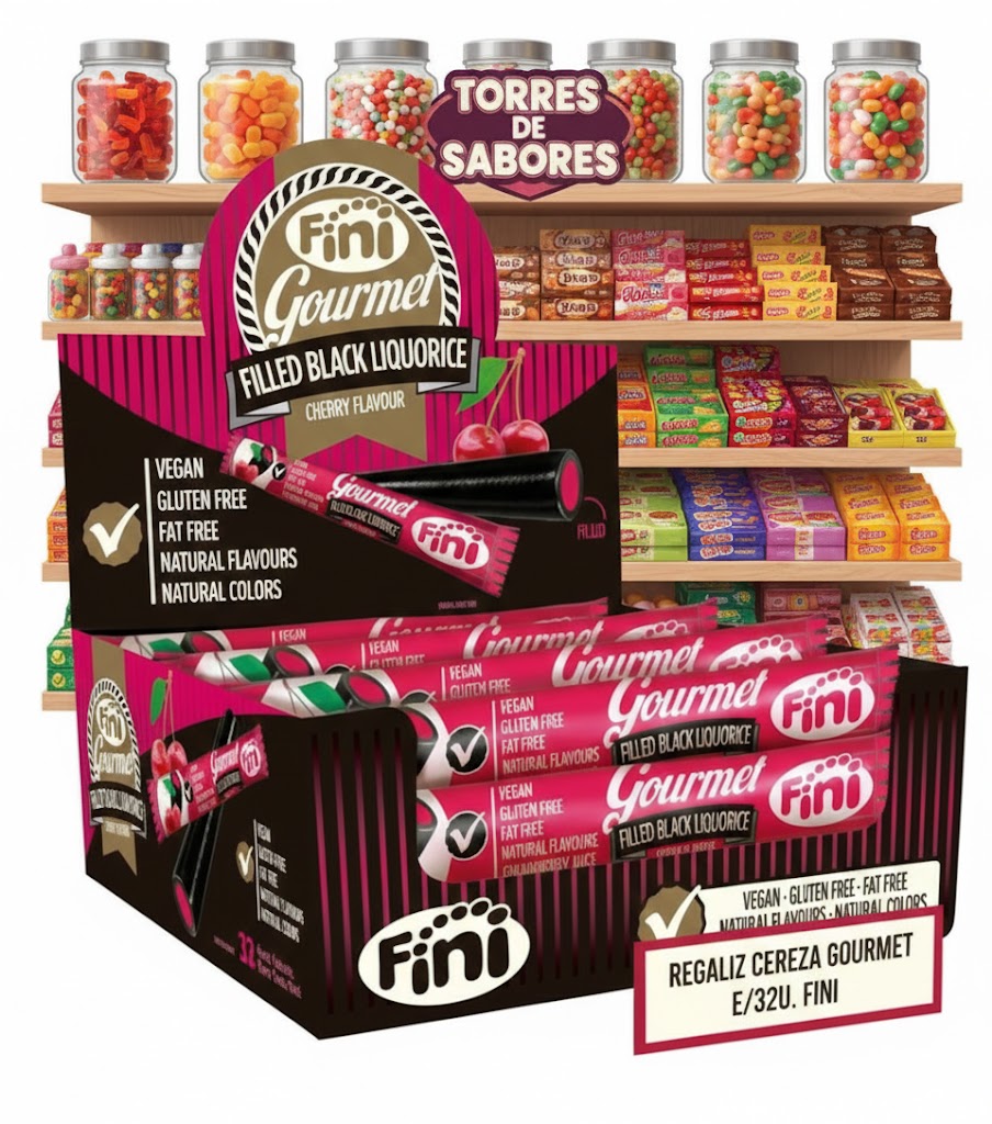 Las chuches y gominolas de Fini son una auténtica delicia, pero estos regalices gourmet rellenos de cereza destacan por su sabor único y afrutado. Su textura suave y el intenso relleno hacen que sean el dulce perfecto para cualquier momento. Sin gluten. Apto para veganos.