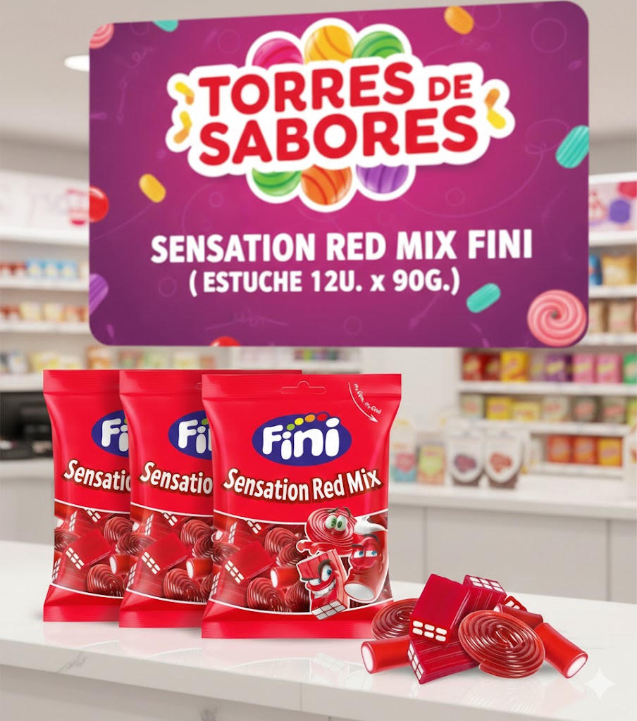 Surtido de regalices rojos con sabor a fresa y nata compuesto por ladrillos rellenos, discos de fresa y rellenitos fresa-nata. Se sirven en paquetes de 90 gramos cada uno. Caja con 12 paquetes.