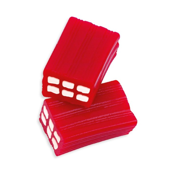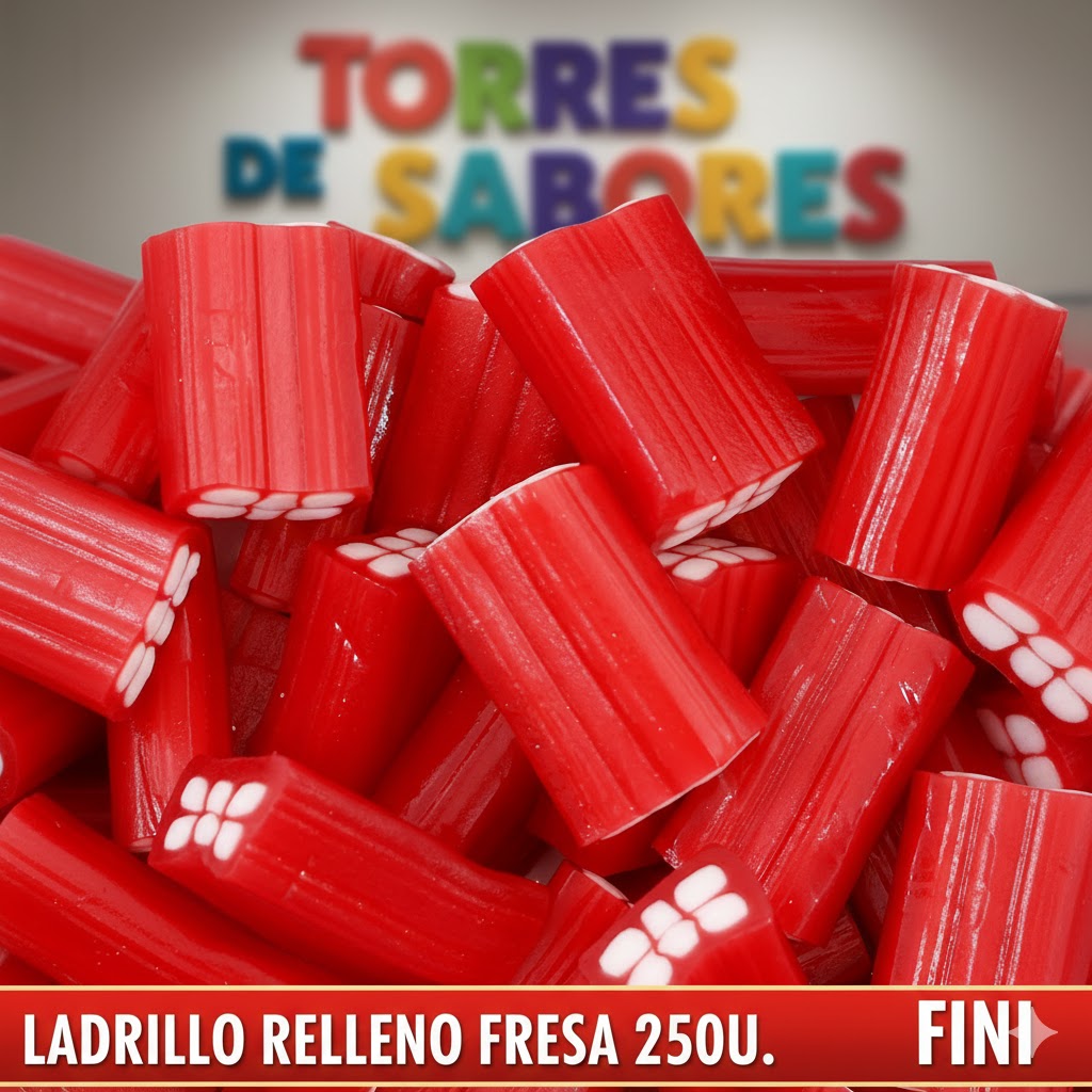 Caramelos de goma Fini Ladrillos fresa brillo rellenos de nata.