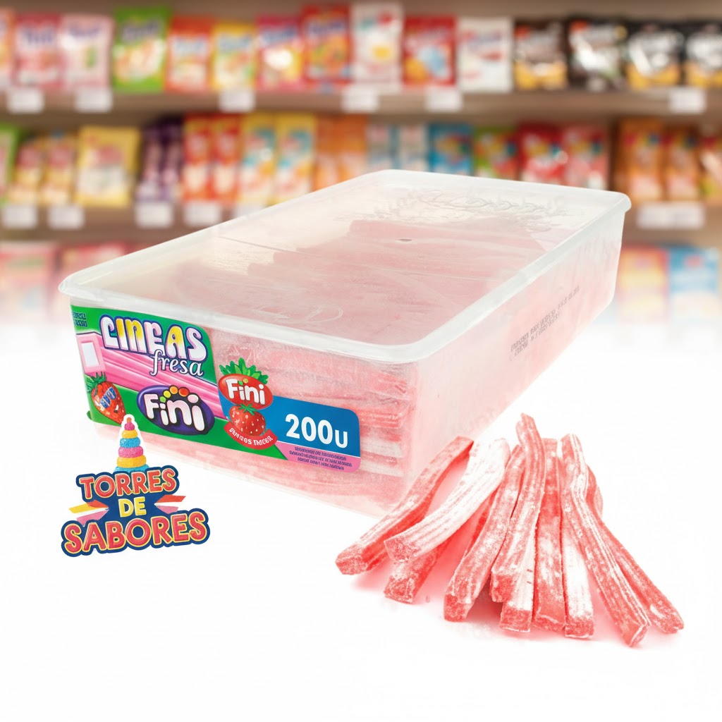 Las líneas FINI son palitos de regaliz con textura fondant sabor fresa y espolvoreados con azúcar glass.