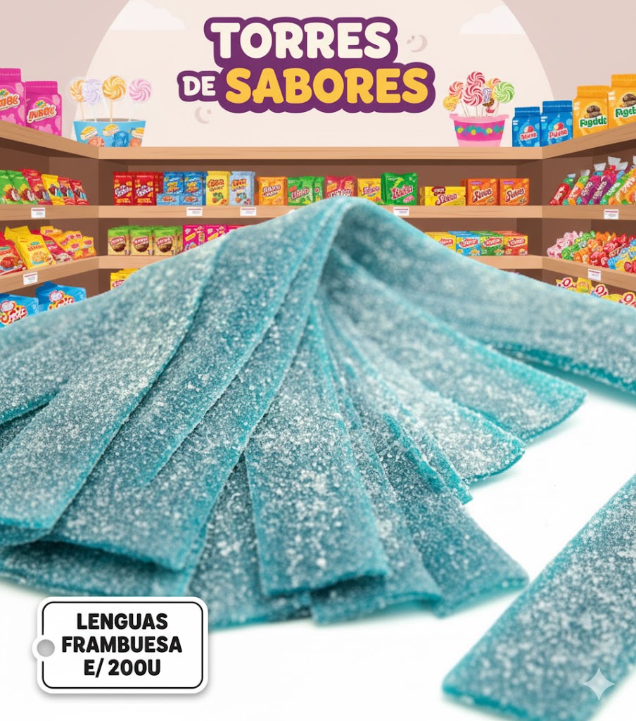 Lengua Fini Sabor a Frambuesa 200 unidades Deliciosas y finas cintas de regaliz de cola cubiertas con pica pica. Siente esa acidez y frescura al mismo tiempo que te hará disfrutar de un sabor único.