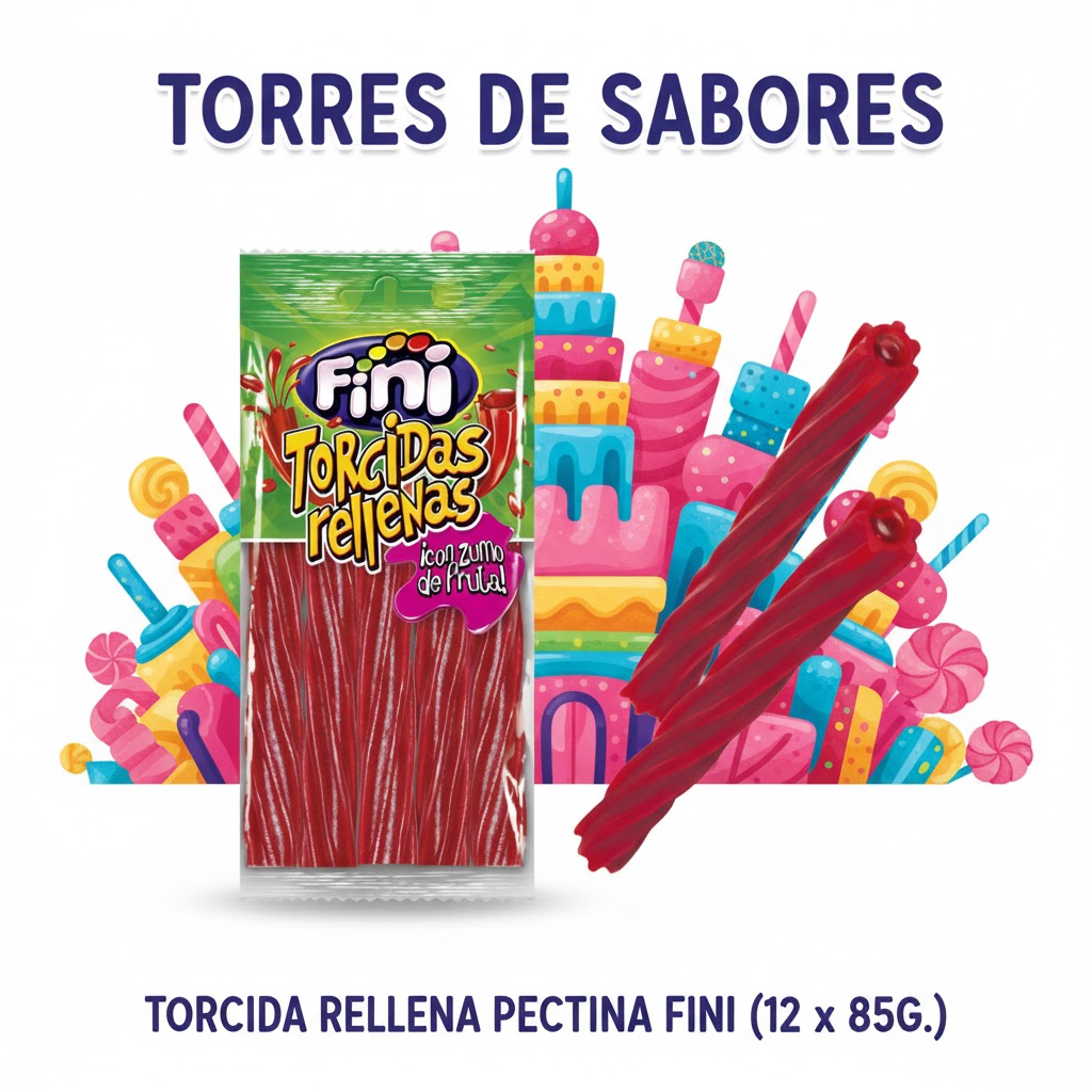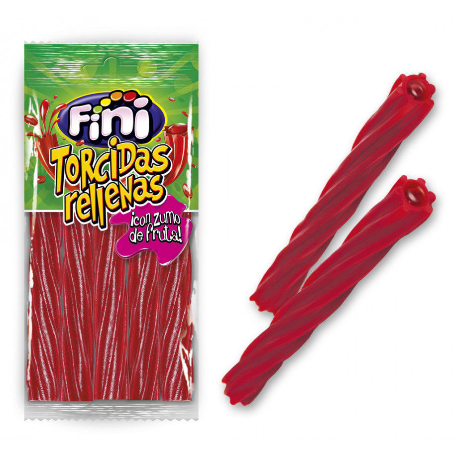 Deliciosa regaliz rellena de gelatina con zumo de fruta. El sabor que tiene el zumo es de fresa. Las torcidas más clásicas, ¡pero rellenas! ¡Irresistibles! Esta caja contiene 12 bolsas de torcidas, cada bolsa pesa 85 gramos.