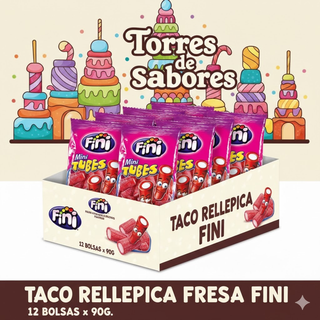 Regaliz de fresa relleno de crema de nata con pica. Cada bolsa contiene 90 gramos.