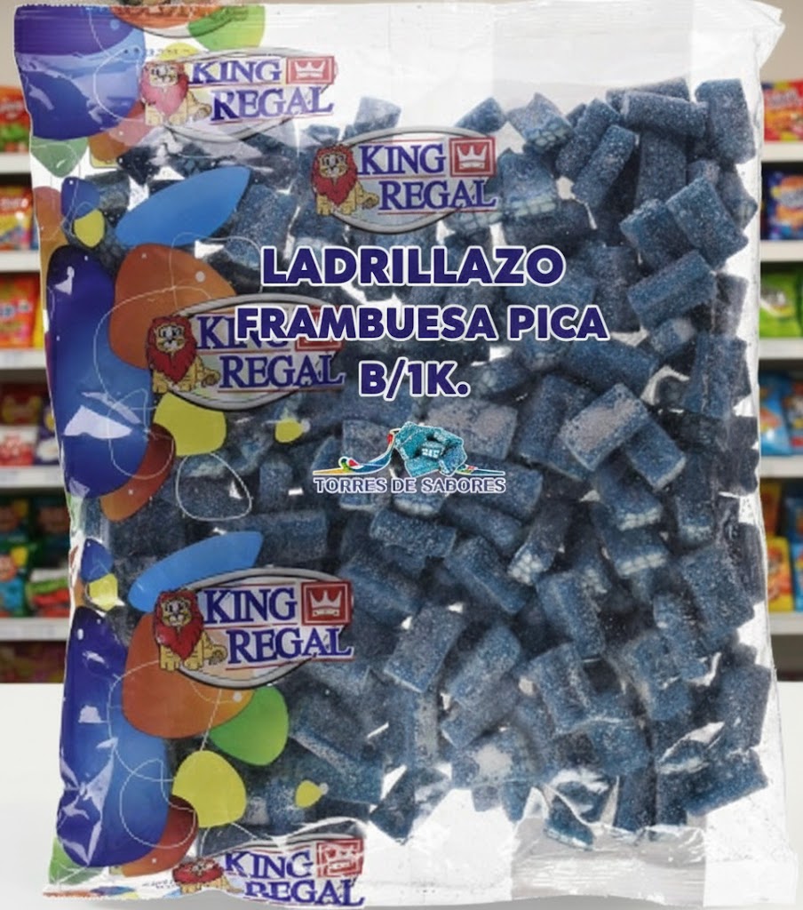 Pieza de regaliz de frambuesa con forma de ladrillo relleno, cubierta de pica. Estos regaliz son ideales para decorar mesas de chuches y candy buffet, también son geniales para la elaboración de tartas de chuches, para rellenar tu carrito de chuches y compuestos, su textura es espectacular y su sabor es fresco y muy intenso.