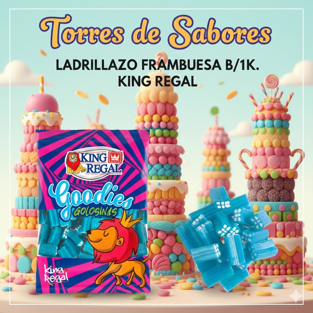Deliciosa regaliz de frambuesa en forma de ladrillo rellenos de nata. Presentados en una bolsa con 1kg.