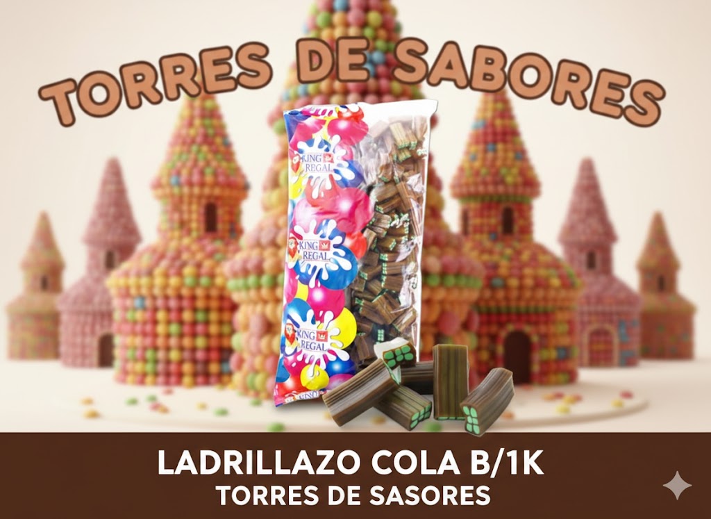 Pieza de regaliz de cola con forma de ladrillo relleno. Bolsa de 1 kilogramo.