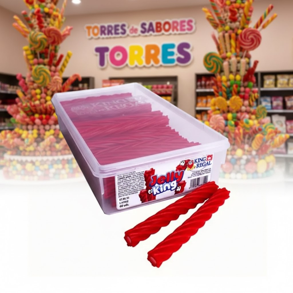 Delicioso regaliz relleno de gelatina blandito y sabroso. La caja contiene 60 unidades.