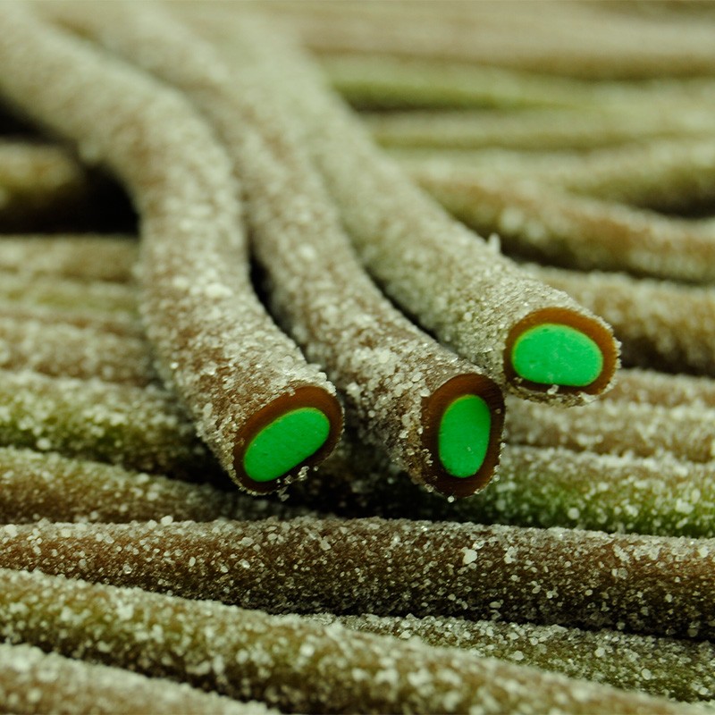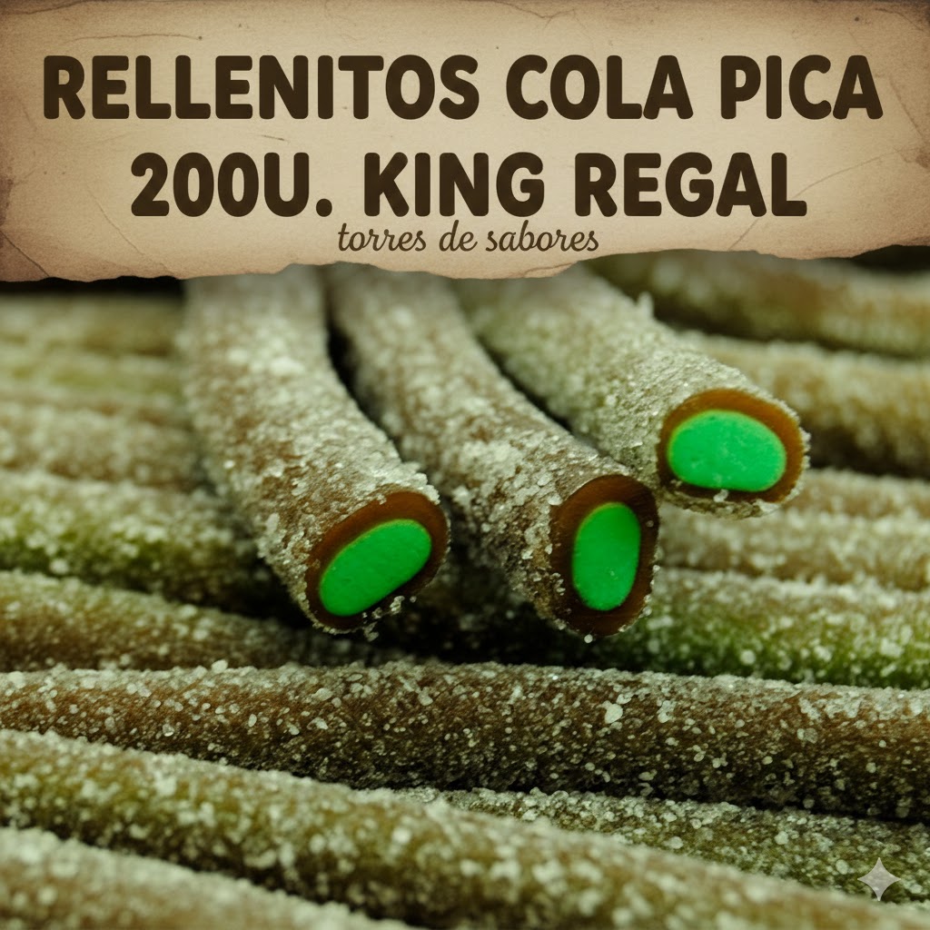 Regalices de sabor a refresco de cola con cobertura de azúcar pica, una golosina ideal para el verano tanto por su sabor como por su efecto refrescante. Vienen en una caja o estuche que contiene 200 unidades individuales.