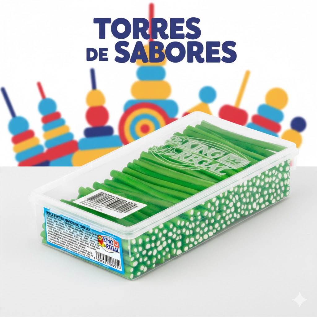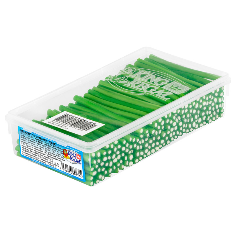 Los Rellenitos Manzana de Fini combinan la textura clásica del regaliz con un relleno dulce y afrutado de manzana. Presentados en bandeja de 200 unidades.