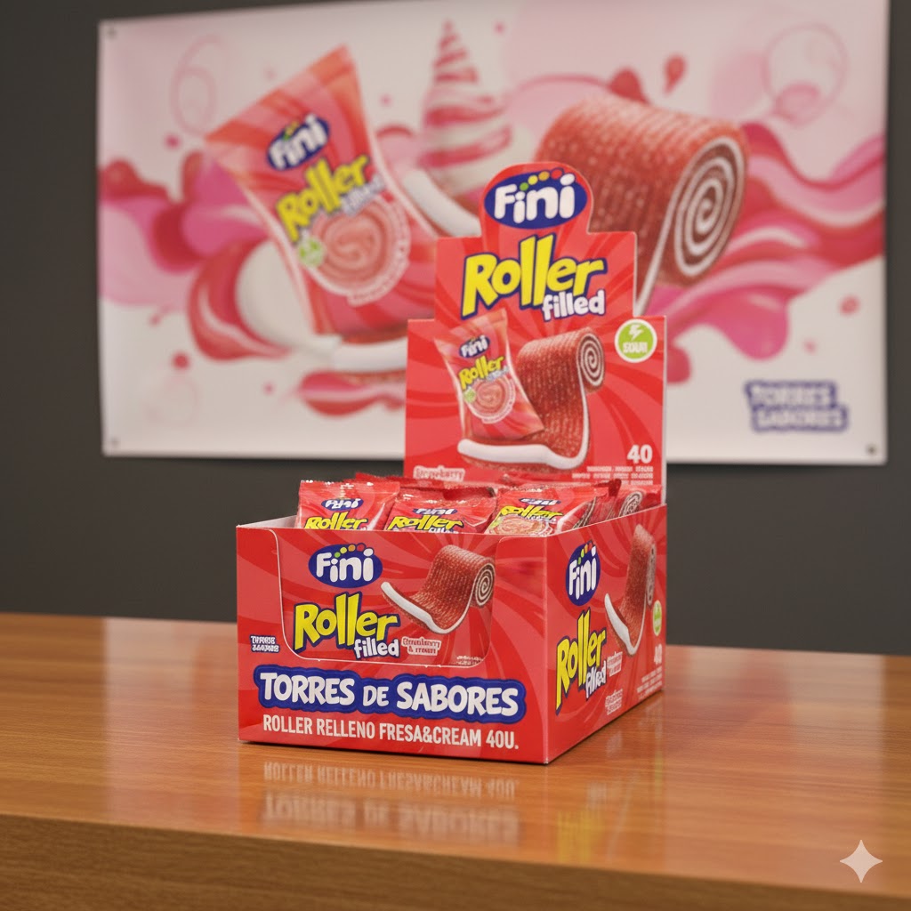 Deliciosas lenguas de pica pica sabor fresa ácida rellenas de crema. La caja contiene 40 fini roller envueltos de 20 gramos cada uno. Están envueltas individualmente.
