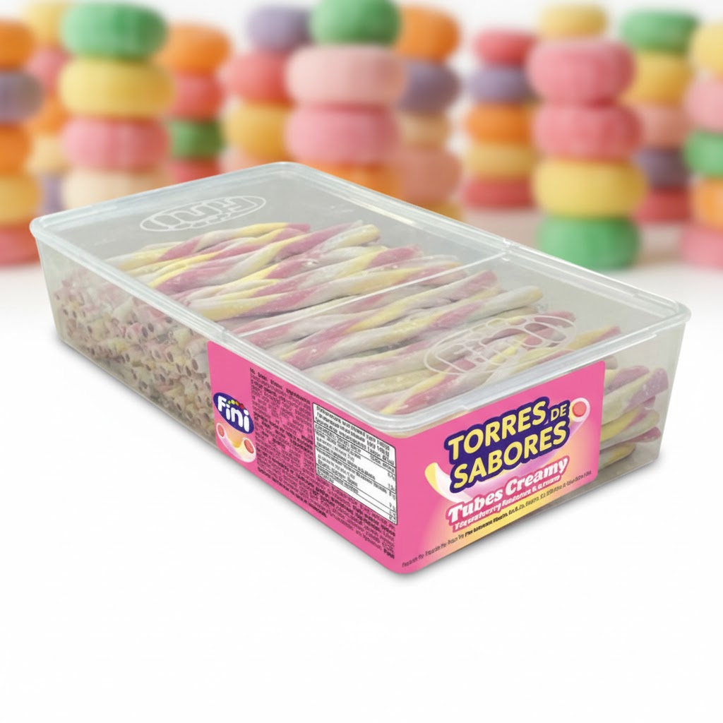 Regaliz relleno con sabor a yogur fresa y plátano. Ideal para decorar mesas dulces o simplemente para darte momentos de puro placer. Su textura suave y tierna se deshace delicadamente en la boca. Estuche con 200 unidades.