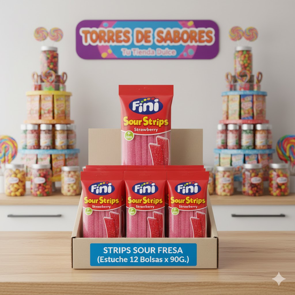 Las Sour Stripes Fresa son lenguas de gominola con sabor a fresa que tienen una textura suave y masticable, acompañada de una capa de azúcar ácido que te hará vivir una experiencia sensorial única. Estuche formado por 12 bolsas de 90g.