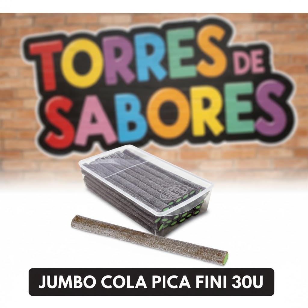 Deliciosos palos de regaliz jumbo con sabor a cola, rellenos de una crema dulce y recubiertos de una fina capa de pica. Su tamaño es extra grande, unos 24cm de largo y la caja contiene 30 unidades.