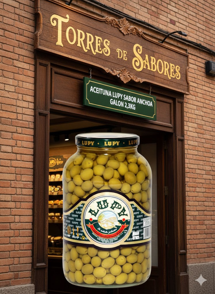 Manzanilla sabor anchoa. Calibre: 240/260 Peso neto: 3,800 Kg. Peso escurrido: 2,300 Kg.
