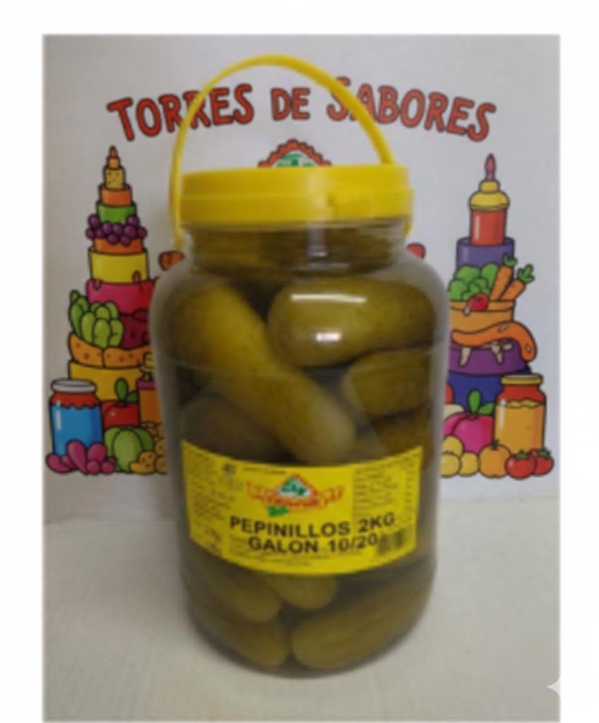 Los pepinillos de la marca Aceitunas Colofón están disponibles en formatos de gran capacidad. El calibre 10/20 indica un tamaño de pepinillo mediano-grande (aproximadamente entre 10 y 20 unidades por kilo o dentro de ese rango de milímetros según el fabricante).