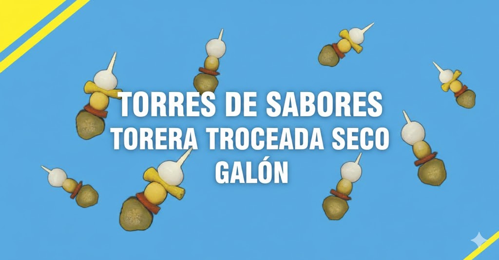 Se trata de la banderilla "Torera" (normalmente compuesta por pepinillo, cebollita, pimiento y piparra) presentada de forma troceada para facilitar su mezcla o uso directo.