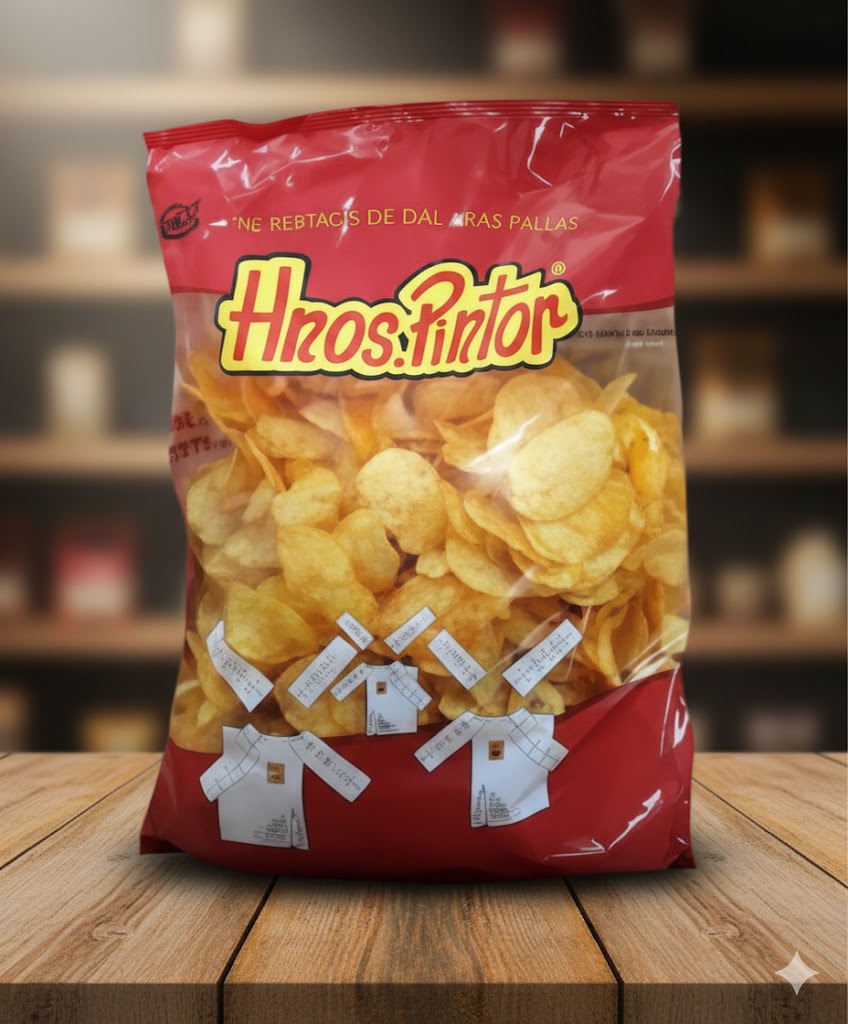 Las patatas fritas picantes de la marca Pintor (Hermanos Pintor) están disponibles en formatos industriales y de gran consumo. Esta marca manchega es reconocida por su elaboración tradicional y artesana.