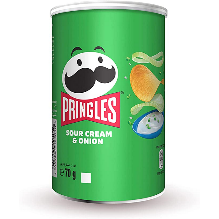 Deliciosas Pringles que combinan la crema agria, cebolla y snack salado.