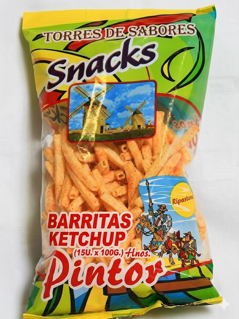 Las Barritas de Ketchup de Hermanos Pintor se comercializan generalmente en bolsas individuales de 100 gramos (o 110 gramos según el formato) y están disponibles para compra profesional o en lotes, a menudo en cajas o packs de múltiples unidades.