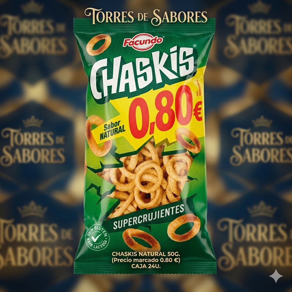 Disfruta de Chaskis Natural 50 gr., el aperitivo perfecto para los amantes de los aperitivos de maíz. Crujiente y delicioso, ideal para vending al por mayor y negocios que buscan snacks clásicos y sabrosos.